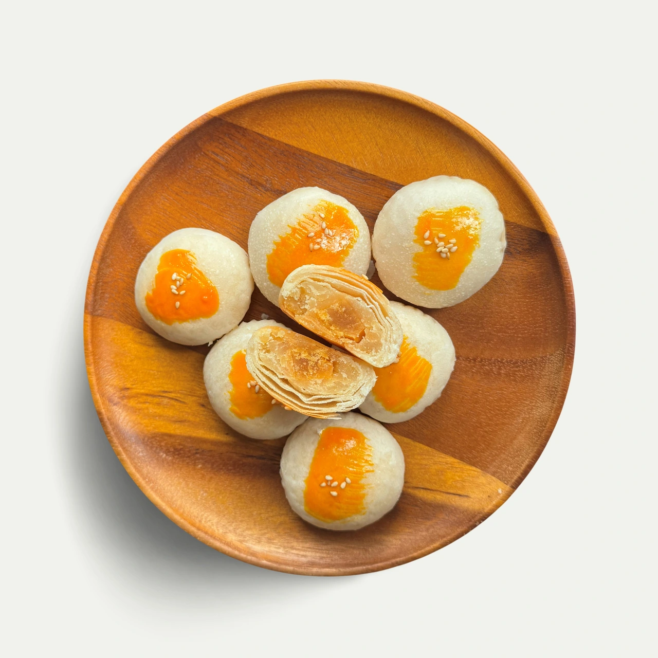 A smooth blend of mung beans and salted egg for a perfectly balanced sweet and savoury bite.